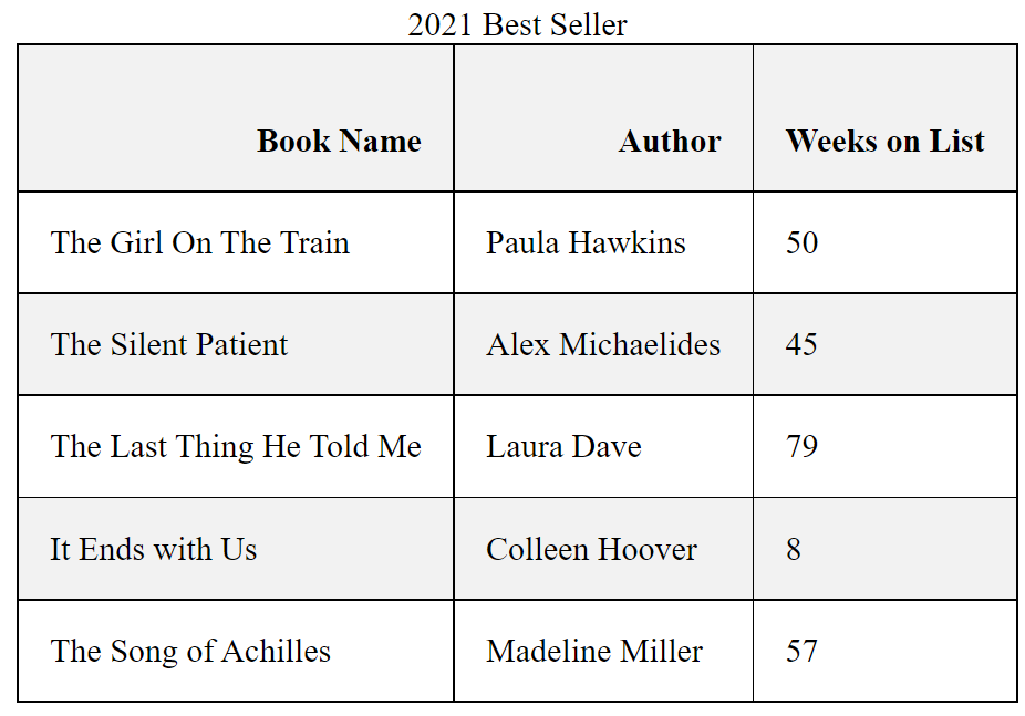 As you can see that HTML tables lack the styling which can help to depict the content distinctively.